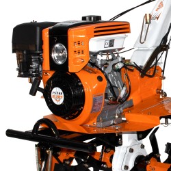 The performance of Ruris 751KS tiller is due to the 8,5 HP gasoline General Engine, the 2+1 gearbox and the bevel gears in oil bath transmission. Ruris 751KS tiller is recommended for any type of soil on surfaces up to 10.000 square meters with a working efficiency up to 1200 sqm/h. The blades width is adjustable and can be establish between 640 mm and 900 mm. With a weight up to 105 kg, equipped with blades, Ruris 751KS tiller can dig and grind the soil up to 30 cm deep, perfect for planting any type of crop. The accessories that can be mounted on Ruris 751KS tiller are: rubber wheels, metallic wheels, ditcher, plough, cultivator and tow which load can reach up to 600-700 kg.