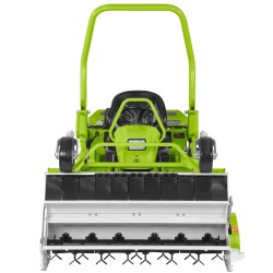 The CFK 700 is a professional front brush cutter built for high performance, comfort, great cutting efficiency, and low fuel use. Its front flail mower gives full visibility of the work area, avoids pressing down the grass, and makes it easy to cut under low branches and bushes. The floating cutting attachment delivers perfect results even on uneven ground, while the pivoting rear axle and tractor-style front wheels ensure a precise finish over bumps and dips. Cutting height adjusts mechanically from 0 to 10 cm quickly and easily without spacers. A single smooth lever controls forward and reverse speeds—from 0 to 15 km/h in fast gear and 0 to 8 km/h in slow—offering maximum control whether cutting or moving. The disc parking brake is operated effortlessly from the driver’s seat, and with its compact size, 37 cm turning radius, and front cutting setup, the FK 700 is perfect for tight spaces or areas with obstacles.