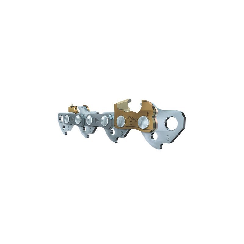Carbide-tipped saw chain that stays sharp for longer, even with frequent use in extreme conditions (e.g. when cutting dirty wood).
