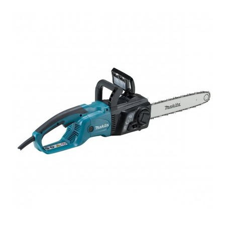 The Makita 14" Electric Chain Saw (model UC3550AX1) is engineered for fast cutting, efficient operation and easy maintenance, without the hassle of gas. The UC3550A has a chain speed of 2,900 FPM for efficient cutting and trimming. The motor has a built-in current limiter which is engineered to protect the motor from burnout by reducing power when the saw is overloaded, and an electric chain brake for maximum productivity. Additional features include an automatic chain oiler for heavy continuous cutting, and a large oil reservoir with view window that allows the operator to easily check the oil level. For increased comfort, the chain saw has ergonomic rubberized grip handles, and a large trigger switch with soft start for smooth start-ups.