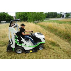 BUFFALO 100 BPHPX2 is fitted with a 1m cutting deck and a 20 hp three-cylinder diesel Perkins engine, it has a higher hourly mowing output of up to 12 000 sq.m. per hour, and an unequaled weight-to-power ratio. The shape of the cutting deck, in Mastershock, is optimized for low turbulence. The deck with double contra progressive curls and a rear central ejection channel which, in conjunction with the two contra rotating blades mounted at right angles to each other and overlapping by 6 cm, produces an extremely powerful vacuum and blowing effect. Fitted with the optional mulching kit, your machine becomes to an outstanding mulching mower. The result is a perfect cut and perfect grass collection every time. The Buffalo 100 ride-on mower is fitted with a built-in grass collector with a capacity of 600 litres, and the hydraulic emptying system is controlled from the driver's seat within easy reach, all the controls - for emptying the grass collector, engaging the blades, setting the grass cutting height, applying the differential lock, etc. The hydro-static transmission makes driving more comfortable, allowing you to make smooth progress. Press the forward or reverse pedal to choose the working speed in complete safety. Power steering ensures precise steering, easy turning, and less fatigue for the operator. The snow plough MV103, with a work width of 100 cm, is ideal to clear the snow from pavements, from ways or from parking lots. The shovel revolves thanks to its hydraulic system but can also be adjust manually.