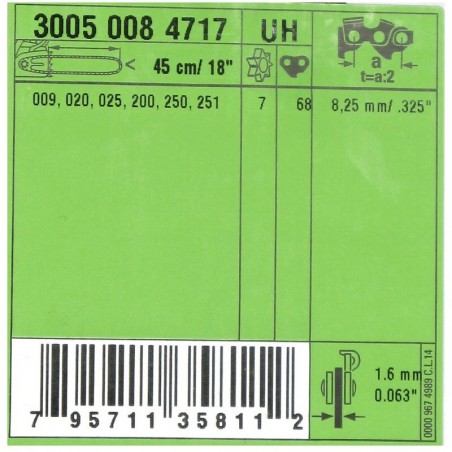 Chainsaw bar Stihl 45 cm 0.325" 1.6mm