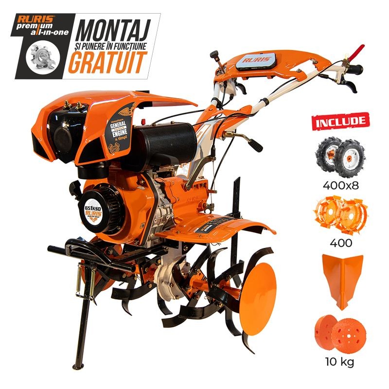The RURIS 651KSD tiller allows all accessories as follows: single and reversible plough, trailer, potato planter, etc. The fitting of the accessories is simple and fast. Maintenance, manoeuvrability are easy and allow all RURIS users to work efficiently throughout the year.
