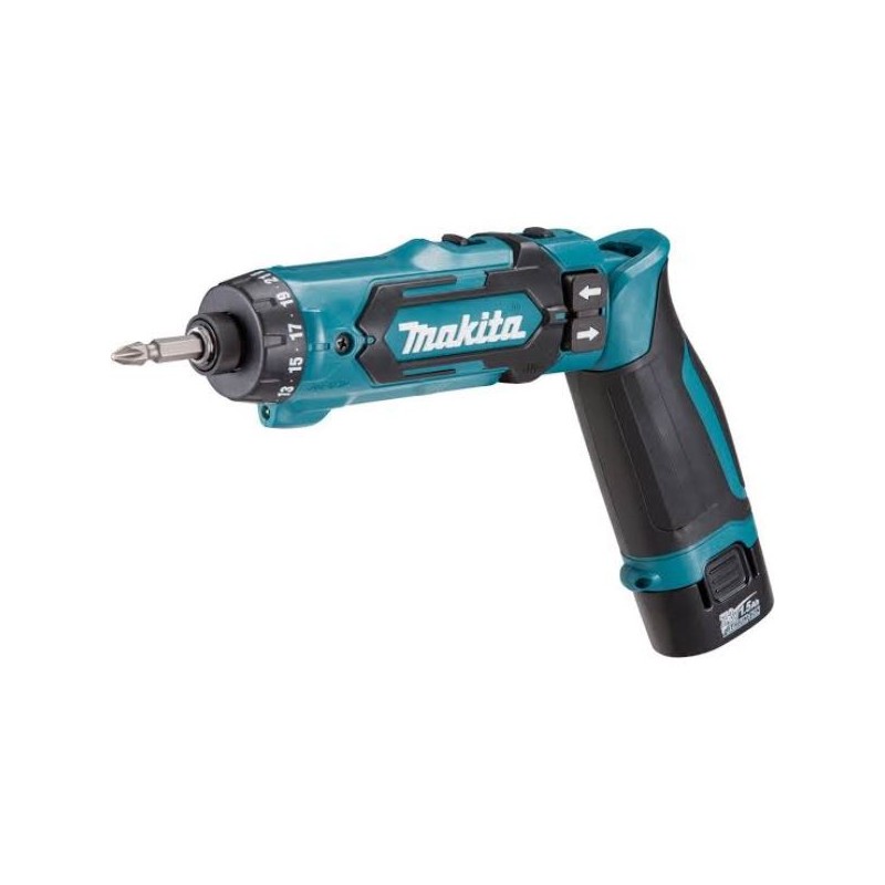DF012DSE is a straight type cordless driver drill compact and lightweight for easy handling. Uses new 7.2V Li-ion battery of stick type as a power unit. Can be easily converted from straight- to pistol-type.