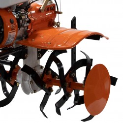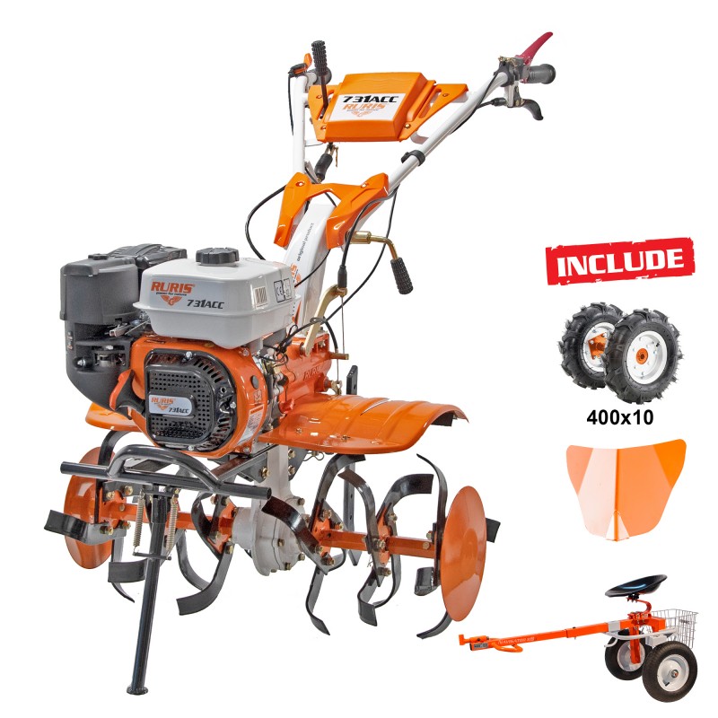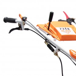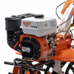 Ruris 731K professional tiller is designed for working in gardens and field crops with dimensions over 5000 m, equipped with a 7,5 HP General Engine. Robust cast iron case for the gearbox and the transmission. Gearbox with easy operation - Easy Control. The RURIS 731K tiller allows all types of accessory for agricultural work, accessories that are listed in the RURIS compatible product list. Usage on all types of soil due to the material's ruggedness of the case (ductile iron). The toolbox allows the user to store the accessories during travel. Ease and comfort of the use, regardless of the experience and knowledge level. The gearbox, operated Easy Control, has a lever system which helps the user to easily shift gears without mechanically index the gearbox sprockets