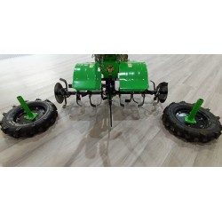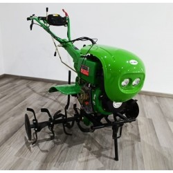 A powerful diesel tiller (12HP) with electric start Ekomot WG 7.5CE equipped with engine hood and headlights.
