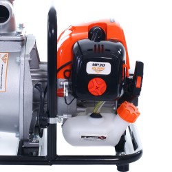 The RURIS MP30 water pump is equipped with a 2-stroke engine and can be used for irrigation by farmers. The RURIS motor pump is compact and has a low weight for easy transport. The pumping basin (pump housing) is self-priming without the user priming the whole hose column, so the water delivery time is immediate with minimal effort. Fuel consumption is low, of about 0.5 L of gasoline / h, for a 15mc / hr pumped water