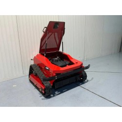 Robot de tuns iarba/ defrisare, telecomandat, hibrid benzina & electric. Robotul este echipat cu doua motoare electrice de 600W pt deplasare si cu un motor pe benzina de 16CP, pt actionarea cutitului de tundere.