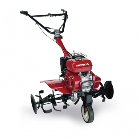 Motocultorul Honda FJ 500 pe benzina are o latime de lucru de 90 cm si este echipat cu un motor Honda OHV de 4.9 CP. Ghidonul este reglabil, atat in inaltime, cat si pe laterala. Cutia de viteze are 2 viteze variabile inainte si una inapoi. Rezervorul de combustibil are 2.4 l si permite o autonomie extinsa de functionare. Motocultorul poate fi echipat optional cu roti cu anvelope, roti metalice, plug de arat, plug de bilonat, etc