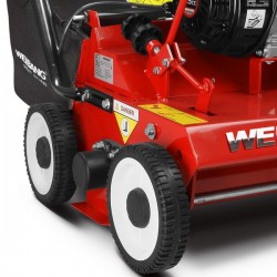 WB384RC este un scarificator profesional pe benzină, cu lățime de lucru de 38 cm, echipat cu 22 de lame din oțel carbon cu vârf dublu și adâncime de greblare reglabilă, perfect pentru îndepărtarea mușchiului, curățarea paiului și aerarea ușoară a rădăcinilor. Propulsat de un motor Loncin de 163 cmc, scarificatorul are un corp din oțel presat și un finisaj durabil vopsit în câmp electrostatic, garantând performanțe de lungă durată. Lamele cu vârf oscilant, fabricate din oțel carbon, necesită întreținere minimă chiar și la contactul cu obiecte dure. Vine cu un colector de 40 l, ideal pentru grădini mai mici, iar rulmenții robuști asigură fiabilitate în cele mai solicitante lucrări.