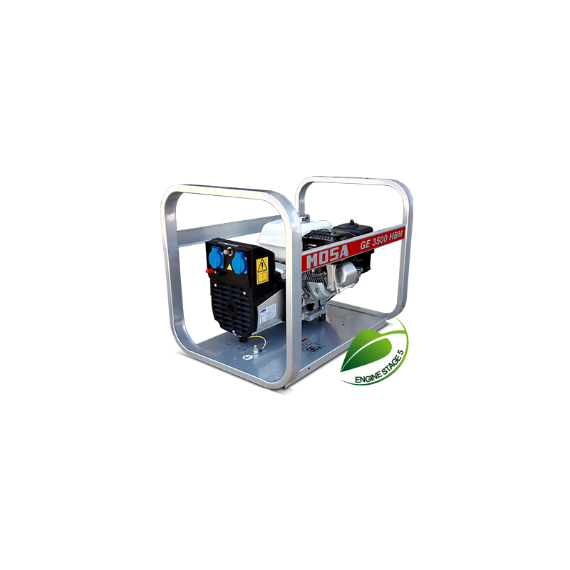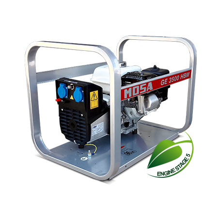 Mosa GE 3500 HBM este un generator portabil, monofazat, alimentat pe benzină, conceput pentru uz profesional. Este dotat cu un motor Honda GX 200 și oferă o sursă de alimentare fiabilă pentru scule și echipamente. MOSA GE3500 HBM este un generator robust ce poate livra constant 2.9kVa putere monofazată în standby: 3,2 kVA (2,9 kW)
