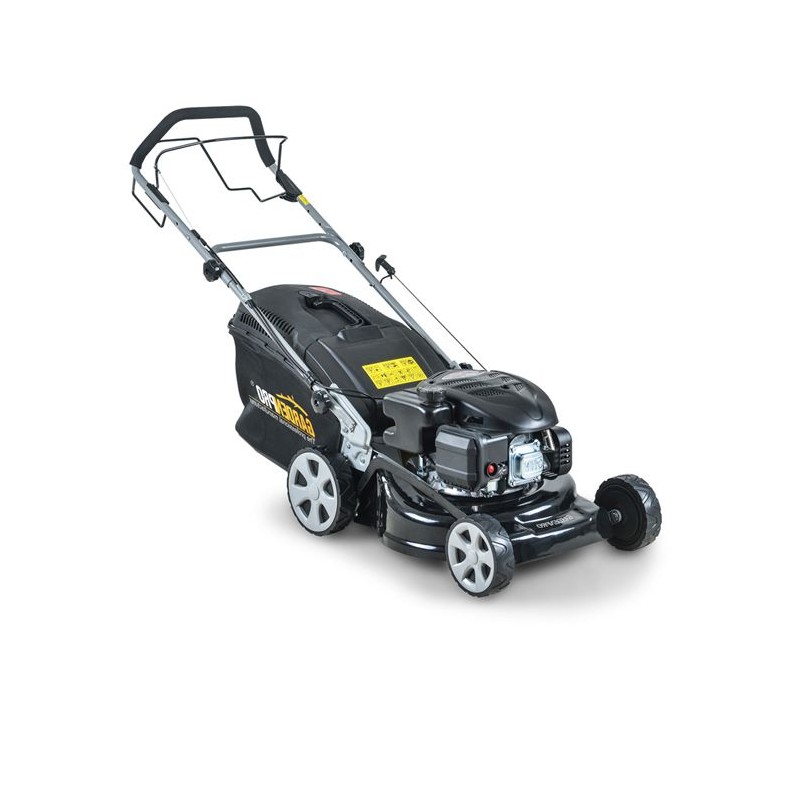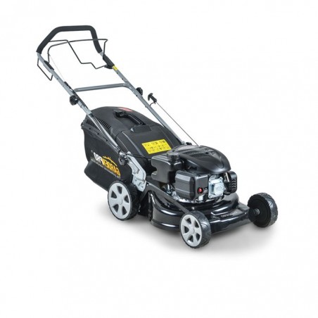 O masina de tuns iarba versatila si puternica, cu o latime de lucru de 45cm, autopropulsie si maner rabatabil, pentru o depozitare facila.