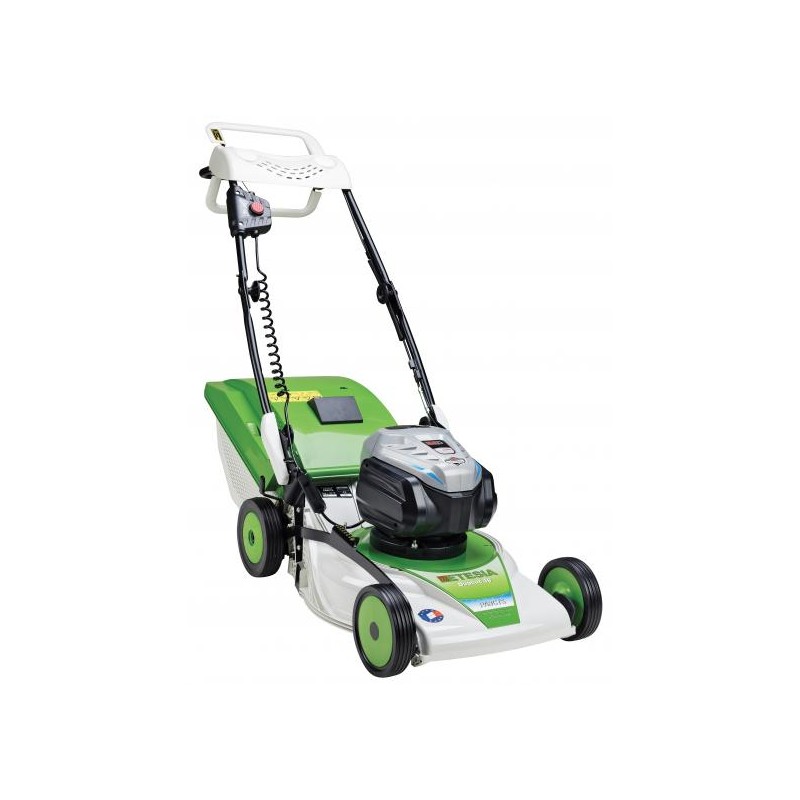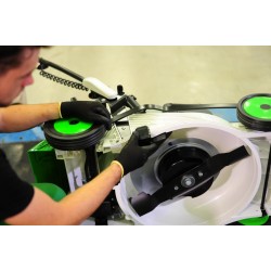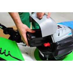Este antrenata de un motor electric brushless, alimentat de un acumulator cu tehnologie Li-Polimer de 81 V si 5 Ah, asigura functionarea utilajului timp de aproape 30 min in modul de tundere cu colectare. Acumulatorul si incarcatorul sunt incluse in pret.