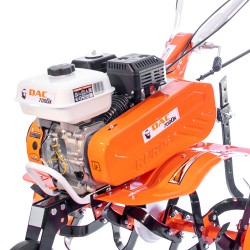 Puternică, uşor de manevrat şi fiabilă, echipata cu motorul General Engine în 4 timpi, cutia de viteze cu 3 trepte (2 înainte şi 1 înapoi), posibilitatea de a ataşa diferite accesorii pentru alte tipuri de lucrări. Motosapele DAC 6000K permit ataşarea unei game variate de accesorii precum: plug cu o brazdă, rariţă, dispozitiv de scos cartofi, cultivator, lamă de zăpadă, sistem de cosit cu tambur, semănătoare, roţi metalice sau de cauciuc ori o remorcă ce suportă o sarcina de până la 500kg. Suplimentar, motosapa DAC 7000K are un cuplu de transmisie cu 25% mai mare faţă de utilaje în gama de putere cuprinsă între 5.5 CP şi 7 CP.
