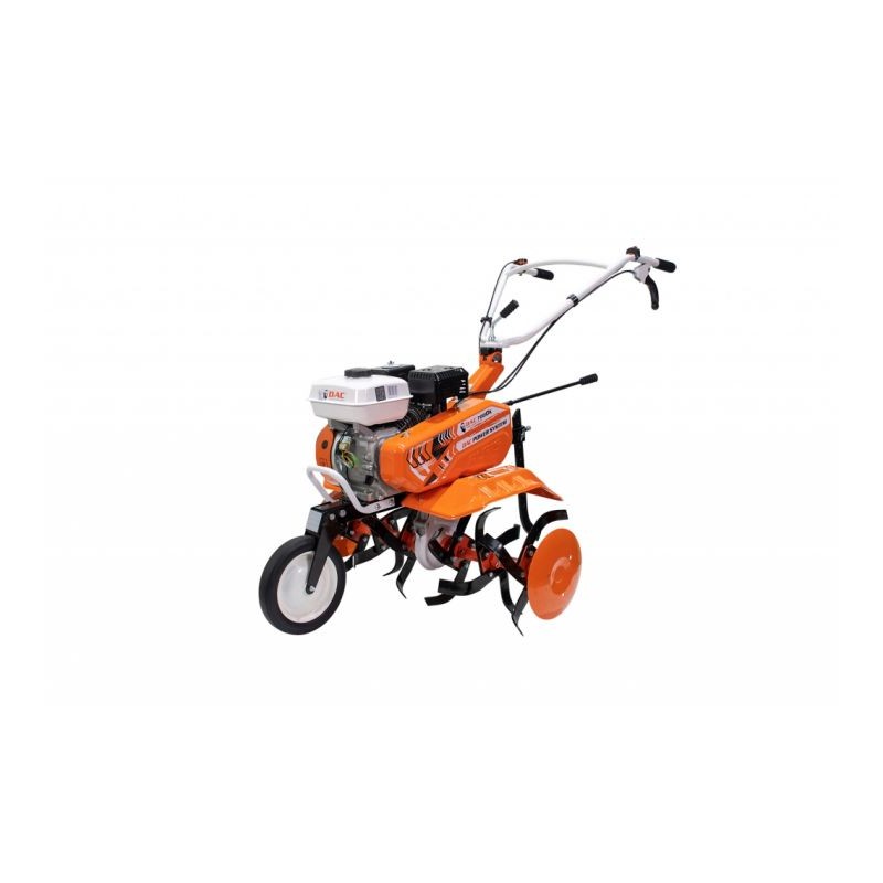 Puternică, uşor de manevrat şi fiabilă, echipata cu motorul General Engine în 4 timpi, cutia de viteze cu 3 trepte (2 înainte şi 1 înapoi), posibilitatea de a ataşa diferite accesorii pentru alte tipuri de lucrări. Motosapele DAC 7000K permit ataşarea unei game variate de accesorii precum: plug cu o brazdă, rariţă, dispozitiv de scos cartofi, cultivator, lamă de zăpadă, sistem de cosit cu tambur, semănătoare, roţi metalice sau de cauciuc, ori o remorcă de până la 500kg.