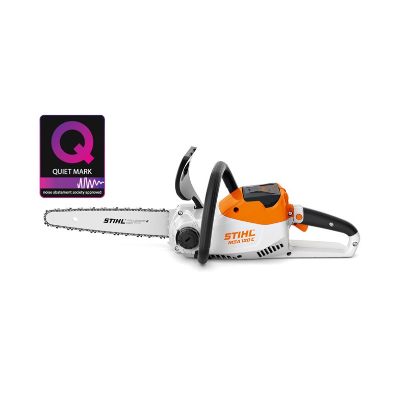 MSA 120 C-B de la Stihl este un motoferăstrău cu acumulator, extraordinar de uşor, util pentru activităţile în grădină şi gospodărie şi pentru prelucrarea lemnul deja doborât. Cu întindere STIHL rapidă a lanţului şi QuickStop Super. Lanţ 1/4” PM3 pentru o tăietură fină şi performanţă optimă de tăiere. Silenţios, nu necesită protecţia auzului.