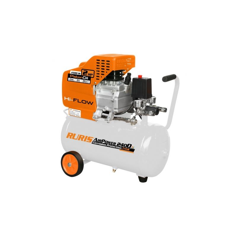 Compresorul RURIS AirPower 2400 este construit pt utilizare in garaj, grădină sau atelier. Butelia de 24 litri silivreaza aer la max 8 bari.Pentru o presiune corectă, compresorul este dotat cu ceasuri de înaltă presiune si valva regulatoare, astfel încât utilizatorul poate menține accesoriile care dotează compresorul la o presiune corect controlată. Cuplarea furtunului de înaltă presiune este făcută cu ajutorul cuplajului rapid cu care este echipat compresorul RURIS.