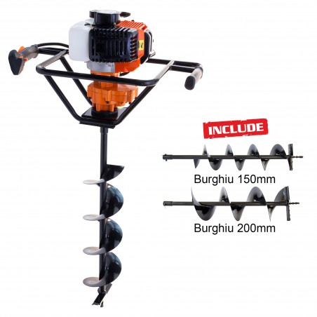 Motoburghiul RURIS TT12 poate fi accesorizat cu burghie cu diametre cuprinse între 150mm-200mm. Este echipat cu transmisie este rezistentă la efort, datorită tipului de reductor special construit cu roți dințate în baie de ulei.