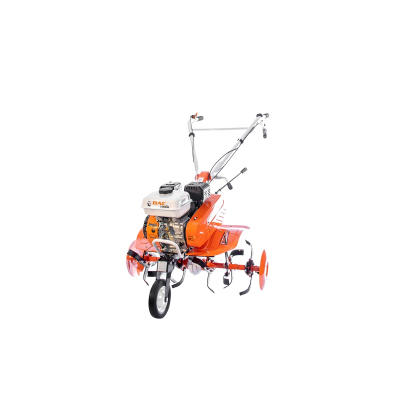 Motosapa puternică, uşor de manevrat şi fiabilă, echipata cu motorul General Engine în 4 timpi, cutia de viteze cu 3 trepte (2 înainte şi 1 înapoi), posibilitatea de a ataşa diferite accesorii pentru alte tipuri de lucrări. Motosapele DAC 6000K permit ataşarea unei game variate de accesorii precum: plug cu o brazdă, rariţă, dispozitiv de scos cartofi, cultivator, lamă de zăpadă, sistem de cosit cu tambur, semănătoare, roţi metalice sau de cauciuc ori o remorcă ce suportă o sarcina de până la 500kg. Suplimentar, motosapa DAC 7000K are un cuplu de transmisie cu 25% mai mare faţă de utilaje în gama de putere cuprinsă între 5.5 CP şi 7 CP.