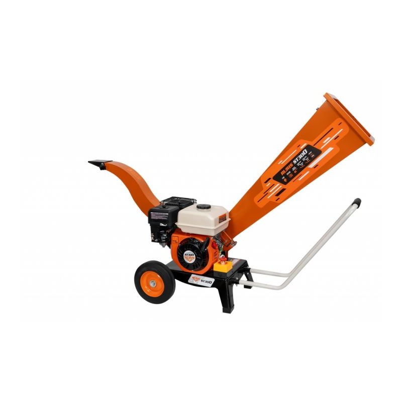 Tocătorul de crengi și resturi vegetale ST300 a fost conceput pentru tocarea ramurilor tăiate, a resturilor de gard viu, crengilor și a altor deșeuri organice din grădină. Resturile vegetale tocate sunt ideale pentru producerea compostului sau pentru a reduce volumul deșeurilor. ST300 potrivit pt un diametru de tăiere de pana la 60 mm, și cu o putere a motorului de 7 CP. Cu o capacitate de tocare de 150-400 kg/oră pentru lemnul uscat și 500-1000 kg/oră pentru lemnul verde. ST300 este echipat cu un întrerupător de oprire urgentă, care poate fi acționat cu ușurință în cazul în care se dorește oprirea imediată a tocătorului asigurând siguranța utilizatorului. ST300 este echipat cu roți rezistente și destul de mari pentru a putea fi manevrat cu ușurință, chiar și de o singură persoană.